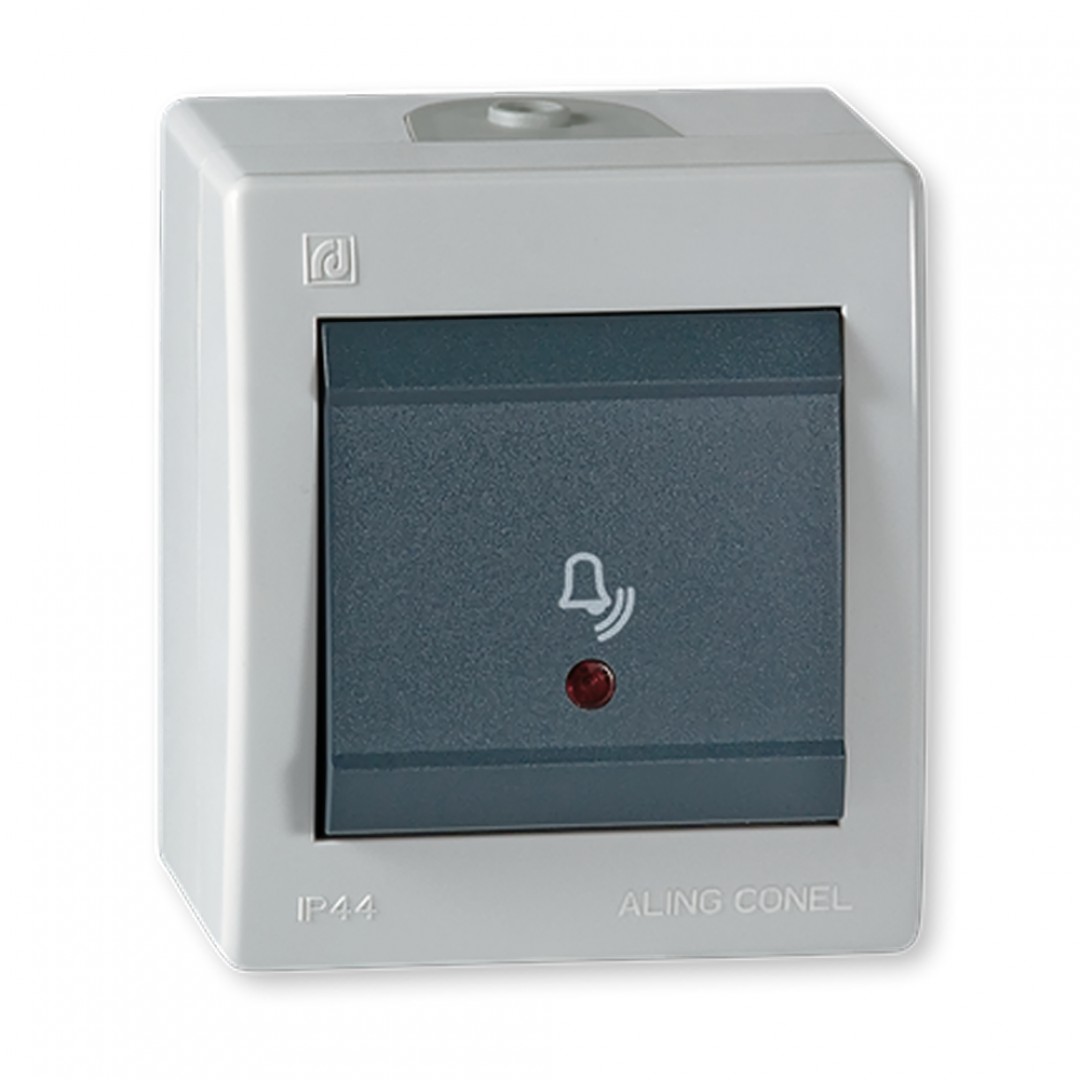 TIPKALO ZA ZVONO - OG - S KONTROLNOM LAMPICOM - IP44 - 10A - SIVO - ALING