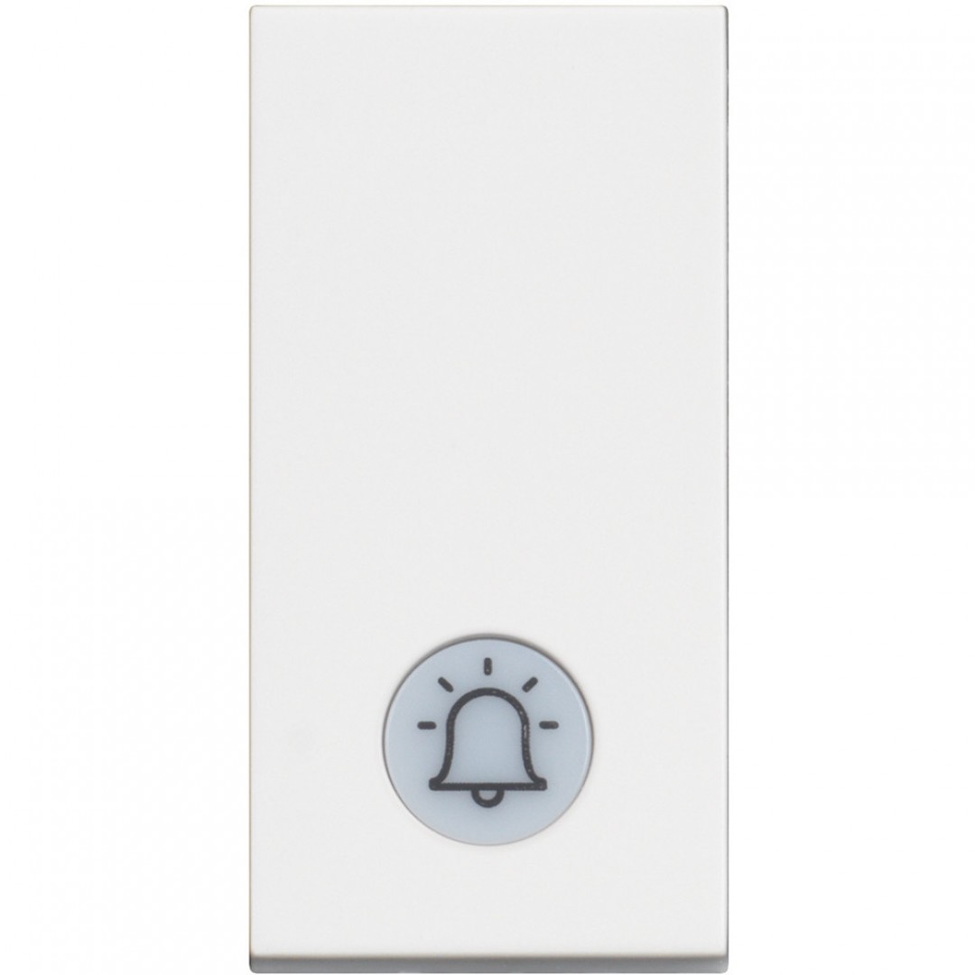 Tipkalo osvijetljeno, simbol zvono, bijelo - 10A. Ravnih linija koje su u kontrastu s blago zakrivljenom površinom mehanizma, upotpunjeni s ukrasnim okvirom postaju jedinstveni detalj u prostoru.