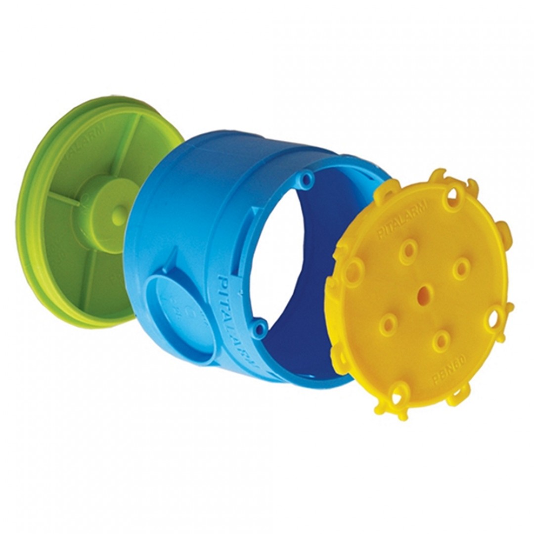 kutija Ø68 plave boje PBN60-00 / tehnološki poklopac žute boje PBN601 / stražnji poklopac zelene boje PBN602